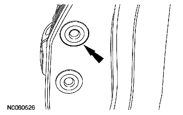 4. Remove the access plugs and lower the window until the glass clamp bolts can be accessed through the 2 access holes. Tape the glass in position.