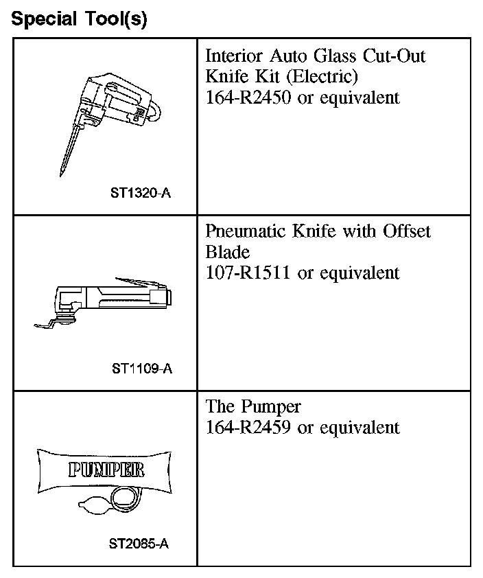 WARNING: To prevent glass splinters from entering eyes or cutting hands, wear safety glasses and heavy gloves when cutting glass from the vehicle. Failure to follow these instructions may result in personal injury.