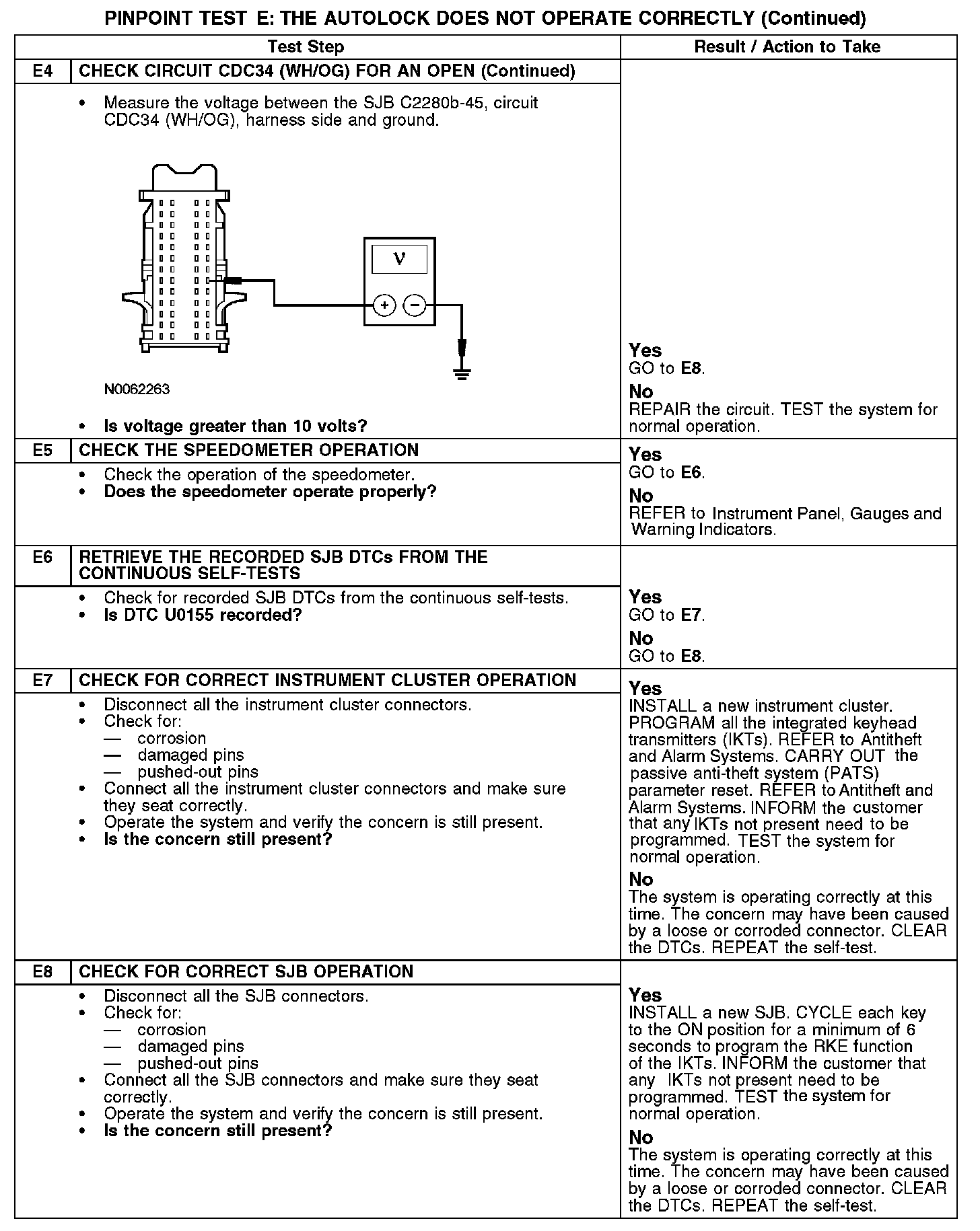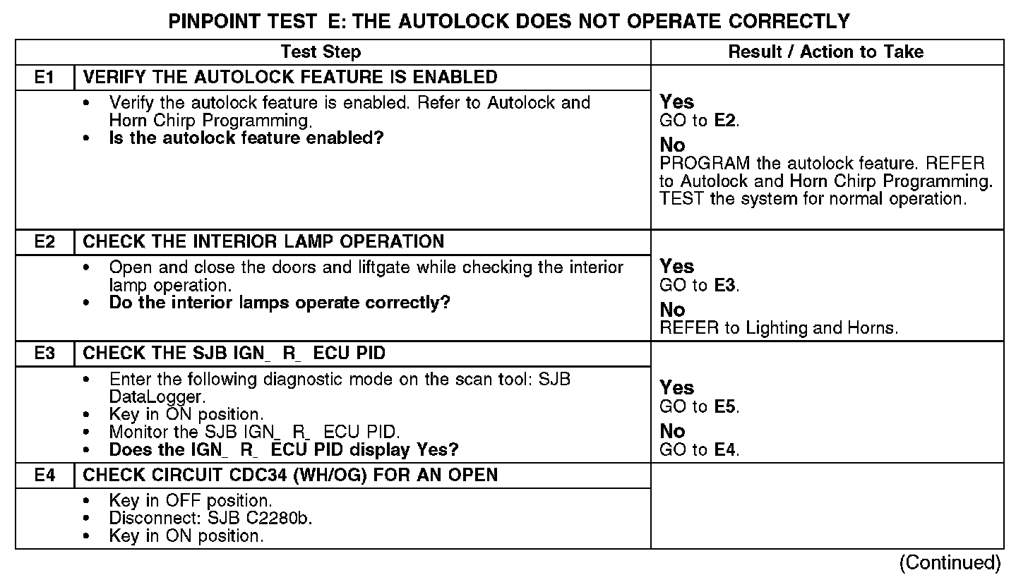 PINPOINT TEST E: THE AUTOLOCK DOES NOT OPERATE CORRECTLYE1-E4: