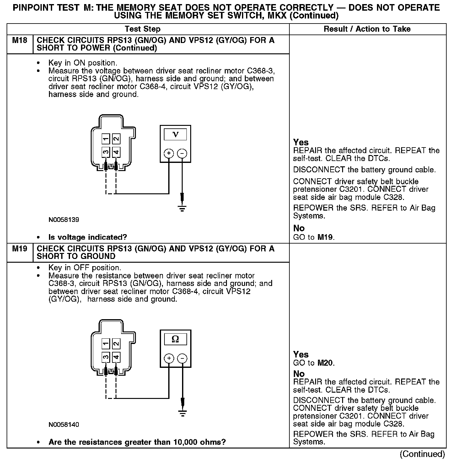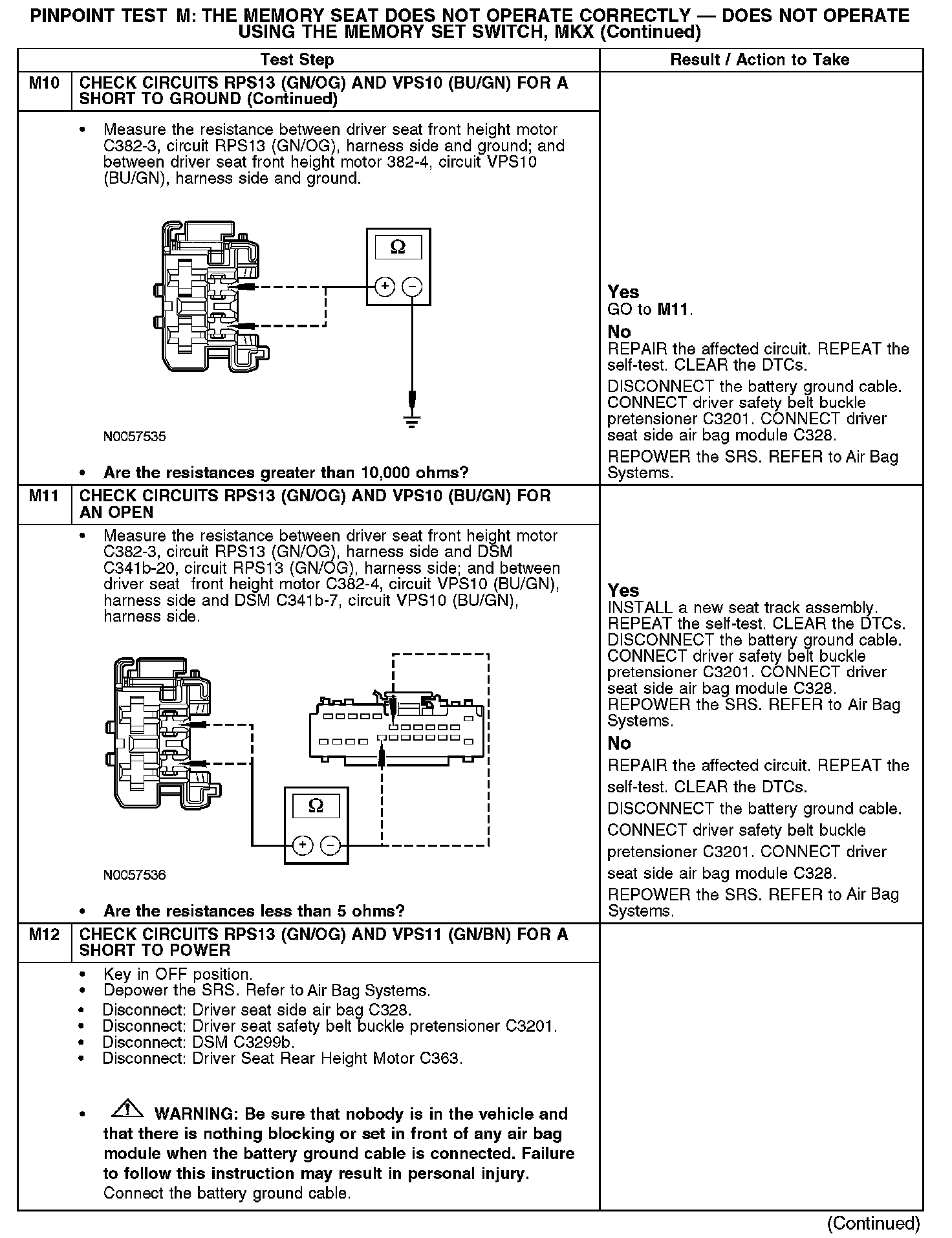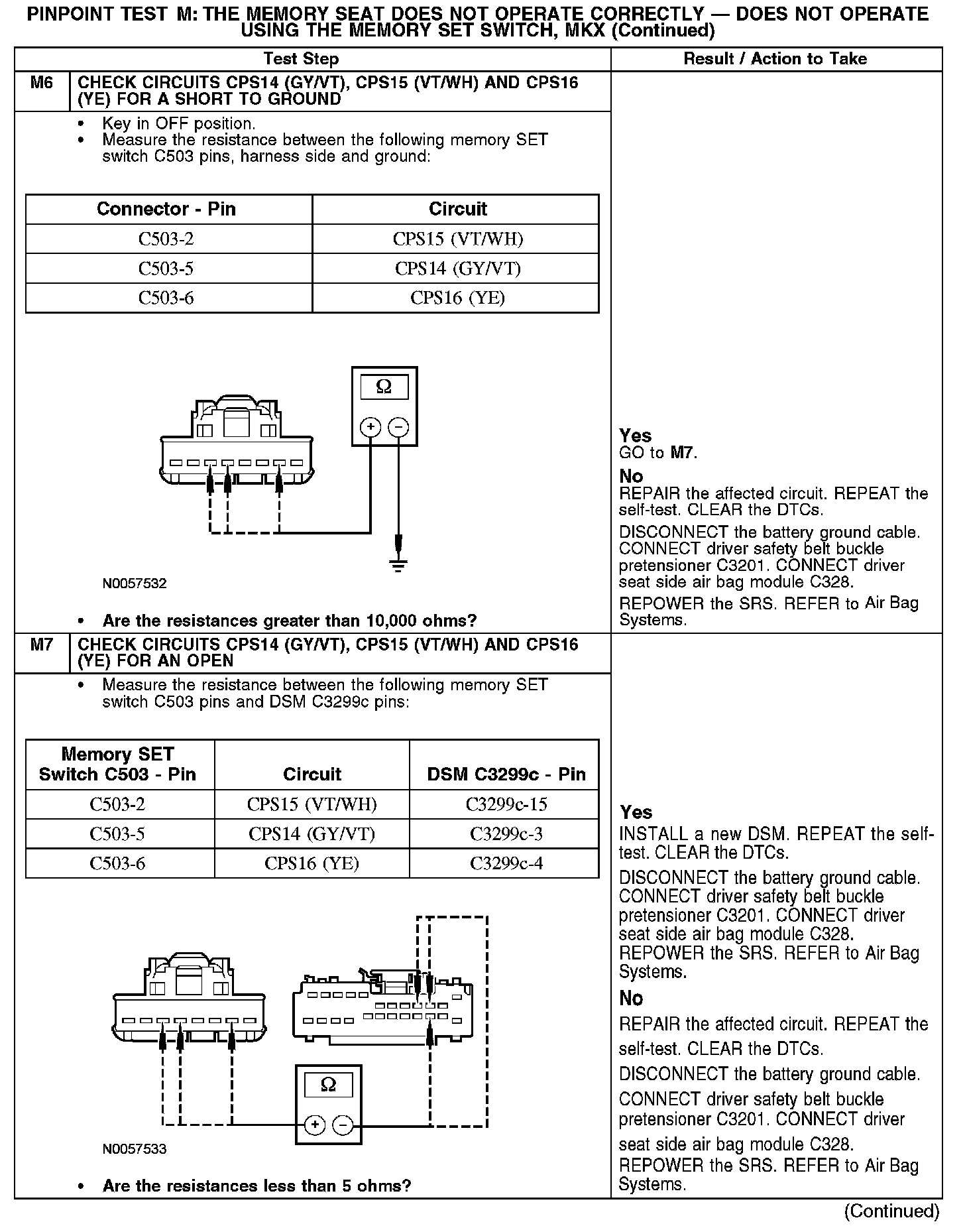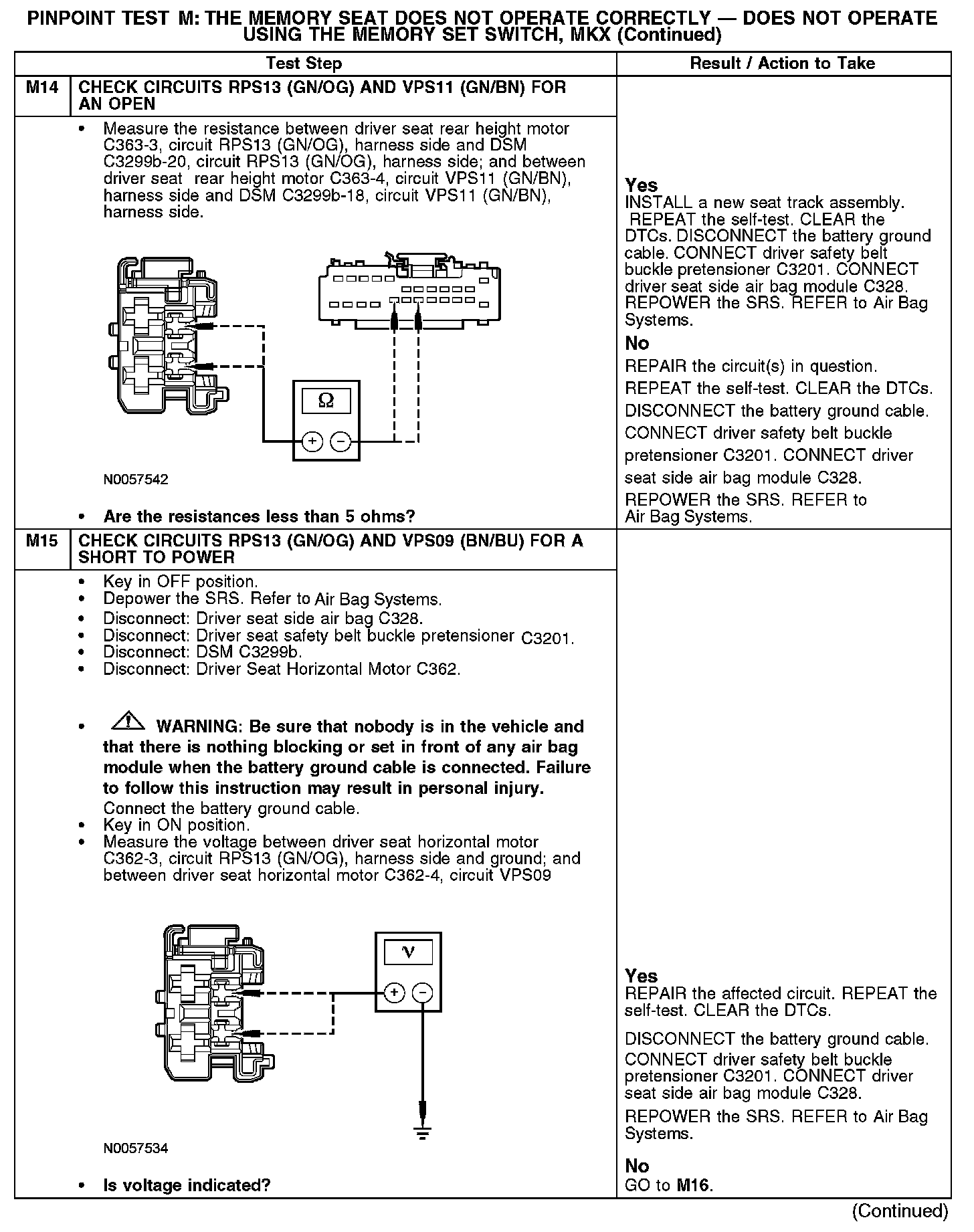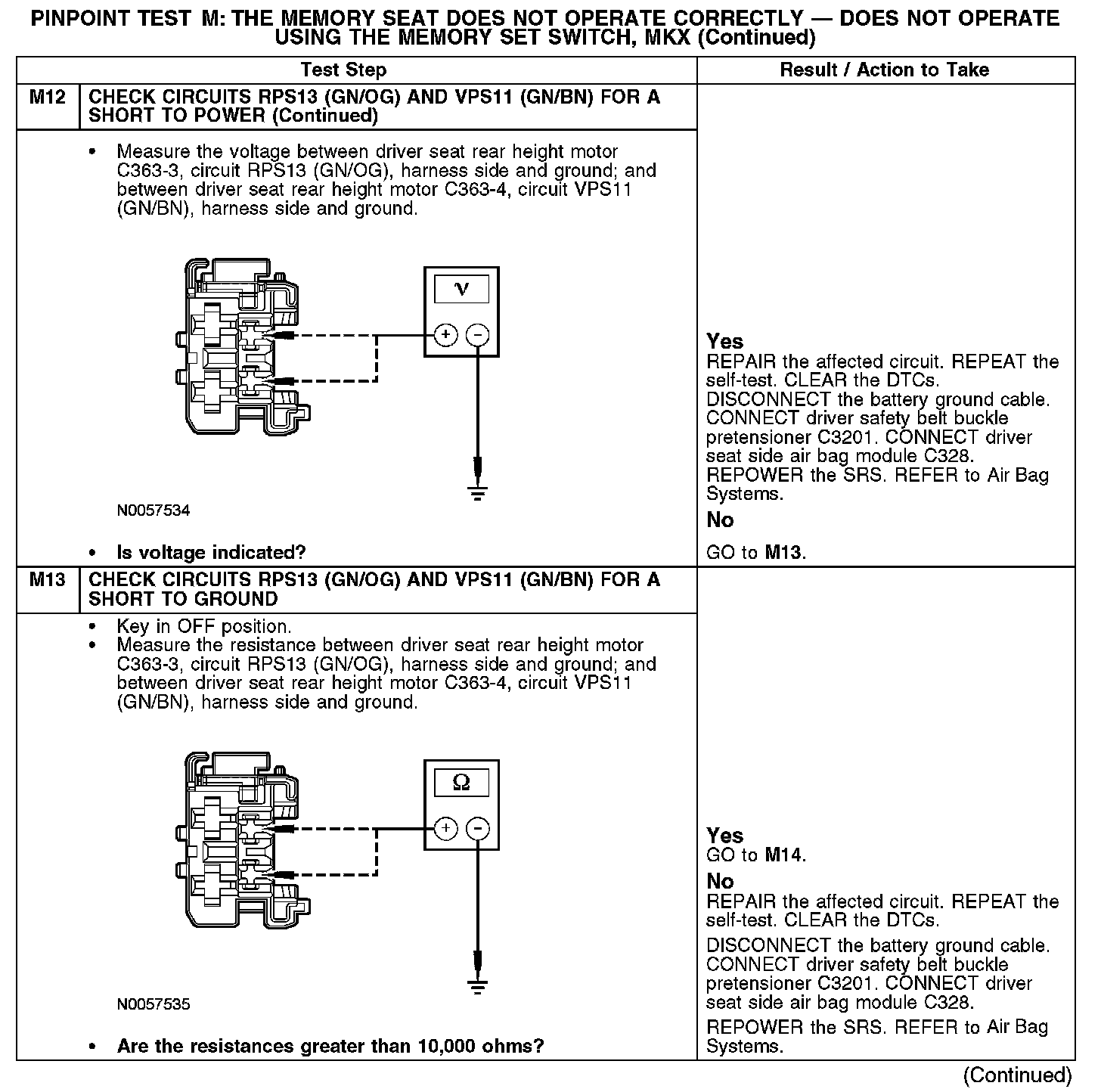 PINPOINT TEST M: THE MEMORY SEAT DOES NOT OPERATE CORRECTLY - DOES NOT OPERATE USING THE MEMORY SET SWITCH, MKXM1-M3: