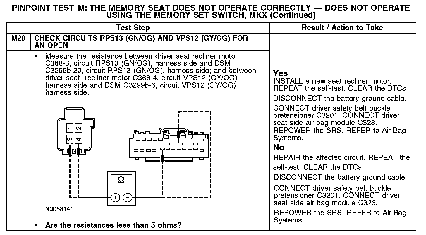 Test M: The Memory Seat Does Not Operate Correctly - Does Not Operate Using The Memory SET Switch, MKX