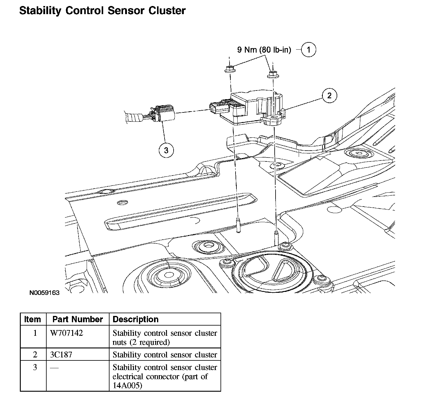 NOTE: When installing a new stability control sensor cluster, the sensor cluster must be calibrated. Follow the scan tool directions for the calibration procedures.