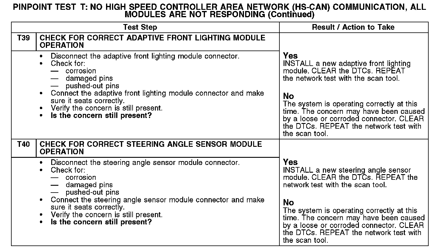Test T: No High Speed Controller Area Network (HS-CAN) Communication, All Modules Are Not Responding