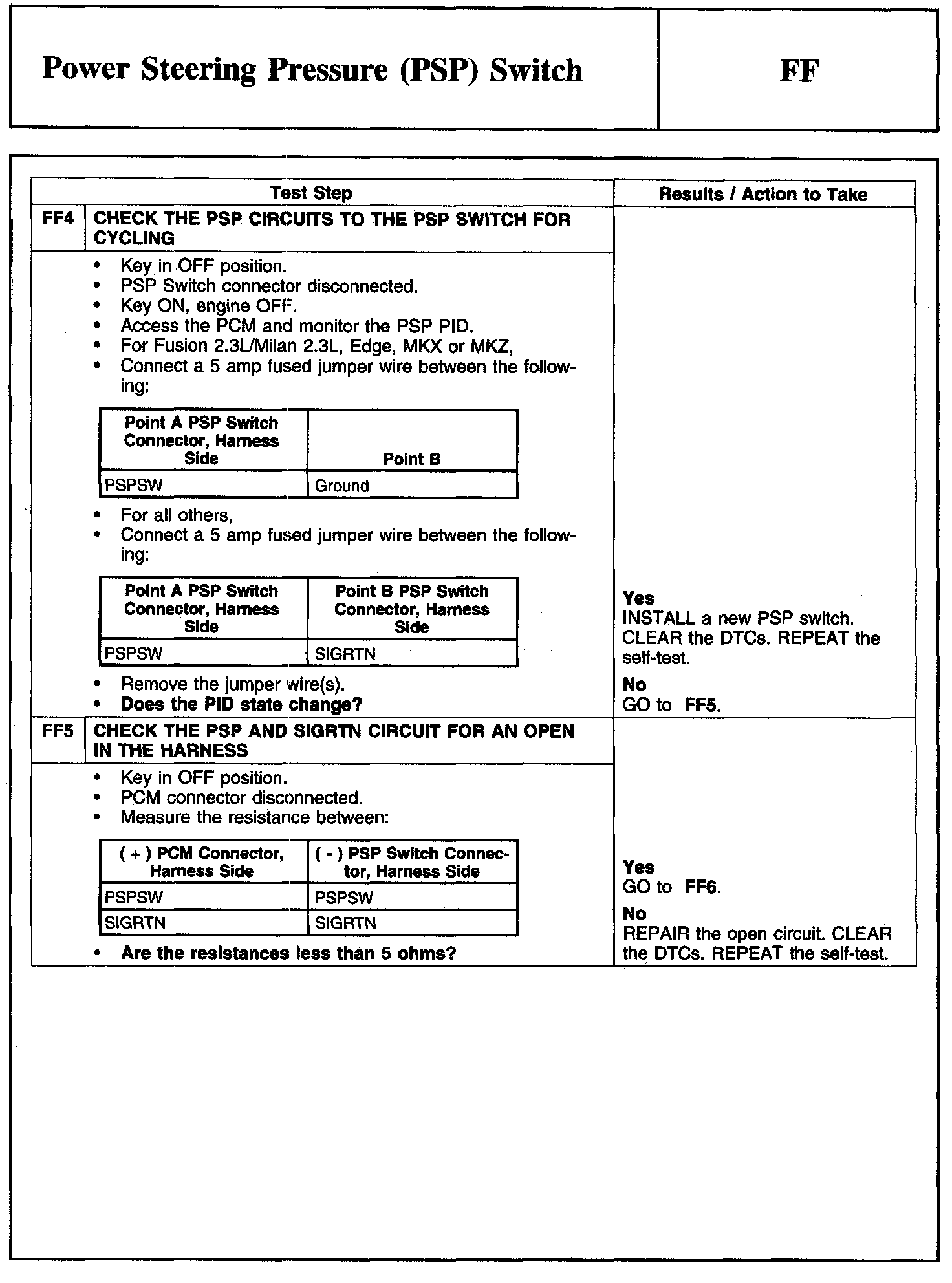 Tests FF: Power Steering Pressure (PSP) Switch