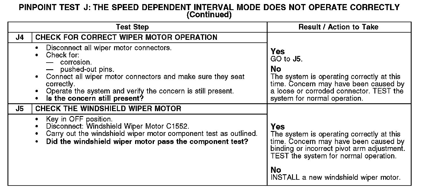 PINPOINT TEST J: THE SPEED DEPENDENT INTERVAL MODE DOES NOT OPERATE CORRECTLYJ1-J3: