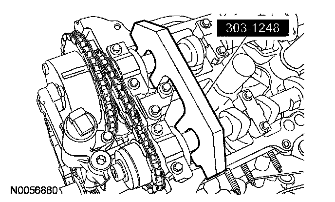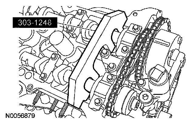 3. NOTE: The special tool will hold the camshafts in the top dead center position.
