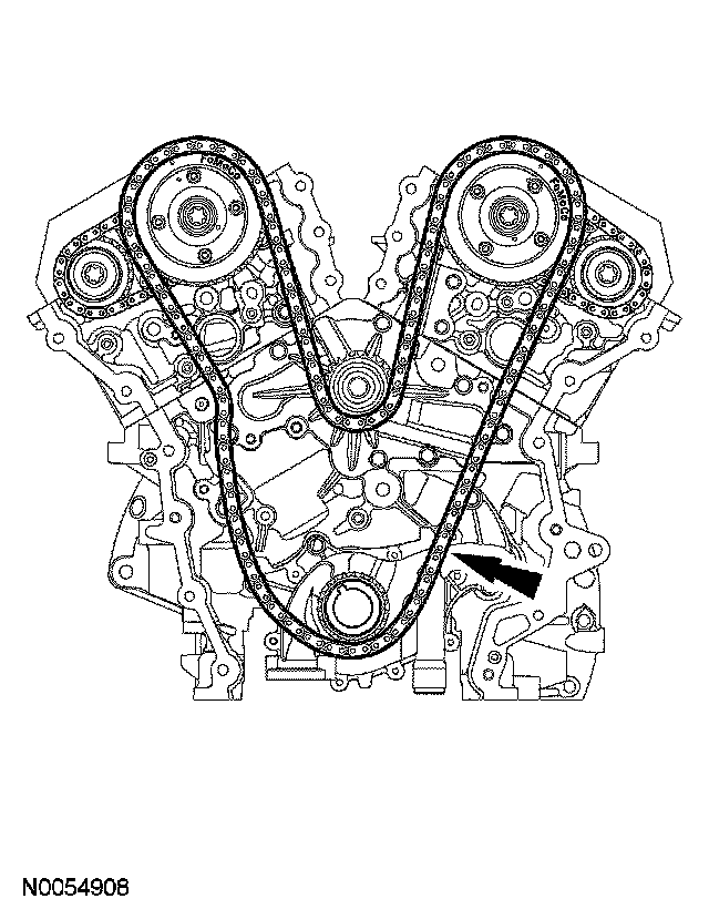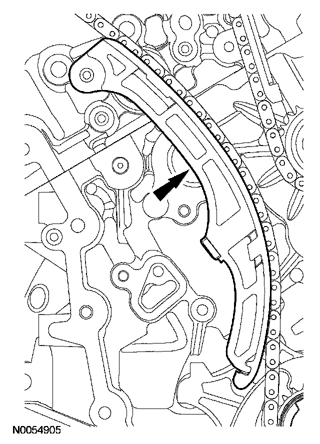 ^ Remove the LH VCT assembly, secondary timing chain and the LH exhaust camshaft sprocket as an assembly.