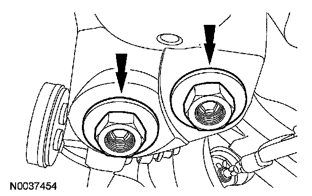 Tighten the 2 subframe bracket-to-body bolts to 103 Nm (76 ft. lbs.).