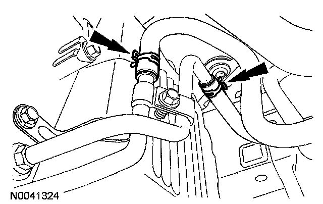 63. Connect the 2 transmission fluid cooler hoses.