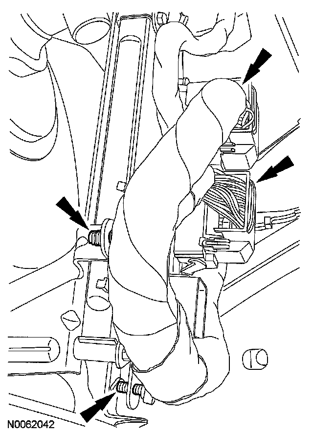 45. NOTE: Do not tighten the 2 catalytic converter support bracket bolts at this time.