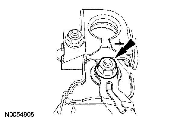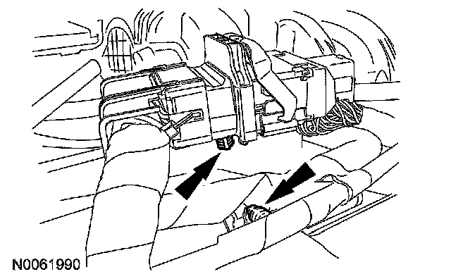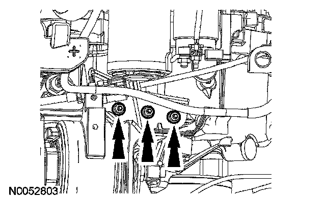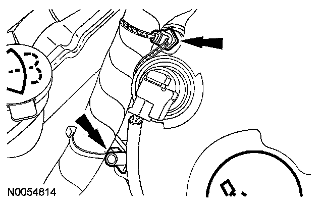 96. Attach the 2 wiring harness retainers to the transmission mount and the battery tray bracket.