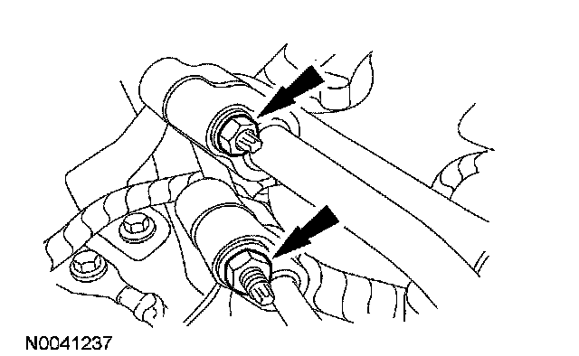 83. Using new O-ring seals, connect the A/C tubes and install the 2 nuts.