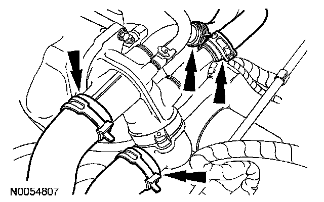 92. Connect the upper radiator hose, lower radiator hose and 2 heater hoses to the thermostat housing.