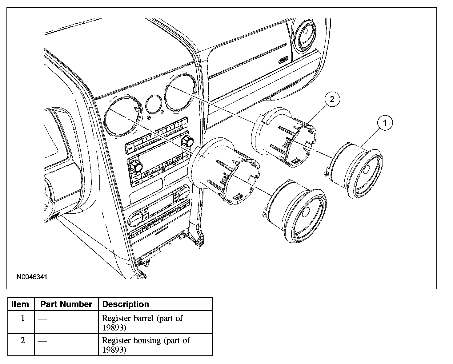 1. CAUTION: To avoid damage to the instrument panel registers, rotate either left or right and pull straight out. Do not wiggle the register from side to side to free it.