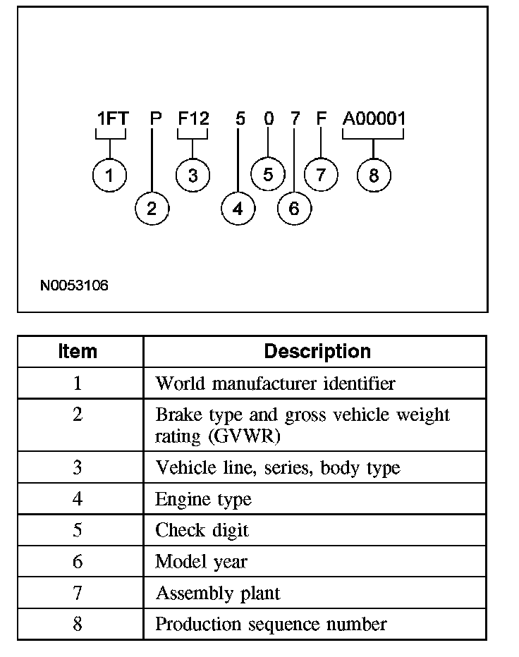 VIN positions 12 through 17 are an alphanumeric code for the vehicle build sequence. This is also the vehicle serial and warranty number. The serial number can also be found on the engine block, transmission and frame.