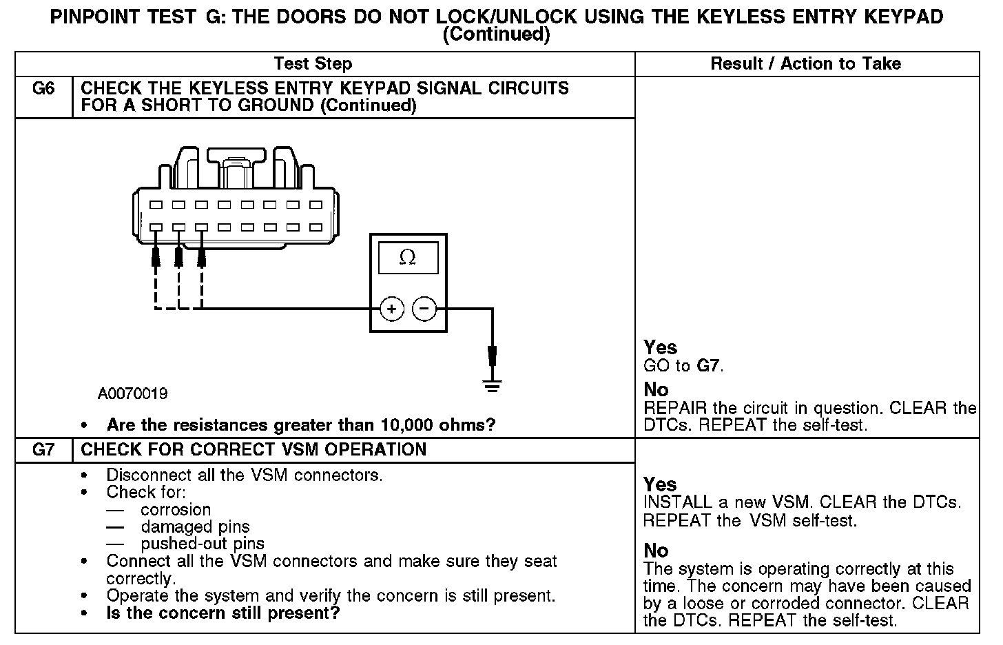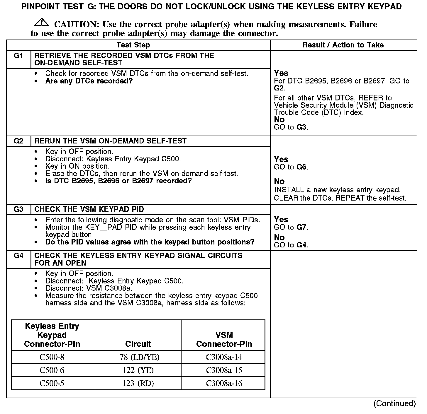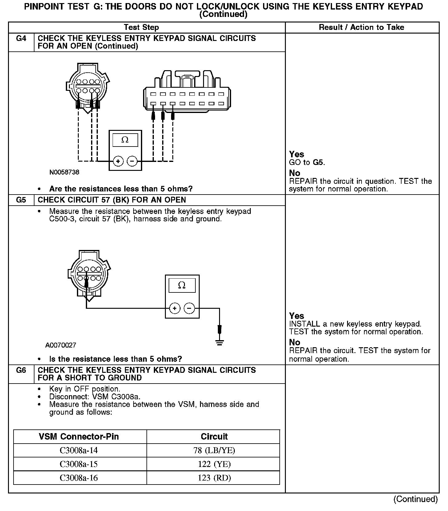 PINPOINT TEST G: THE DOORS DO NOT LOCK/UNLOCK USING THE KEYLESS ENTRY KEYPADG1-G4: