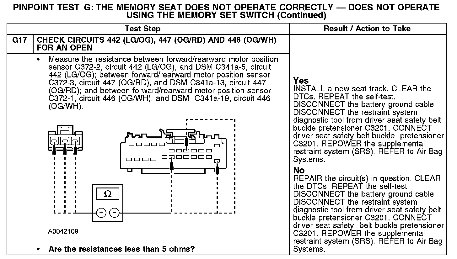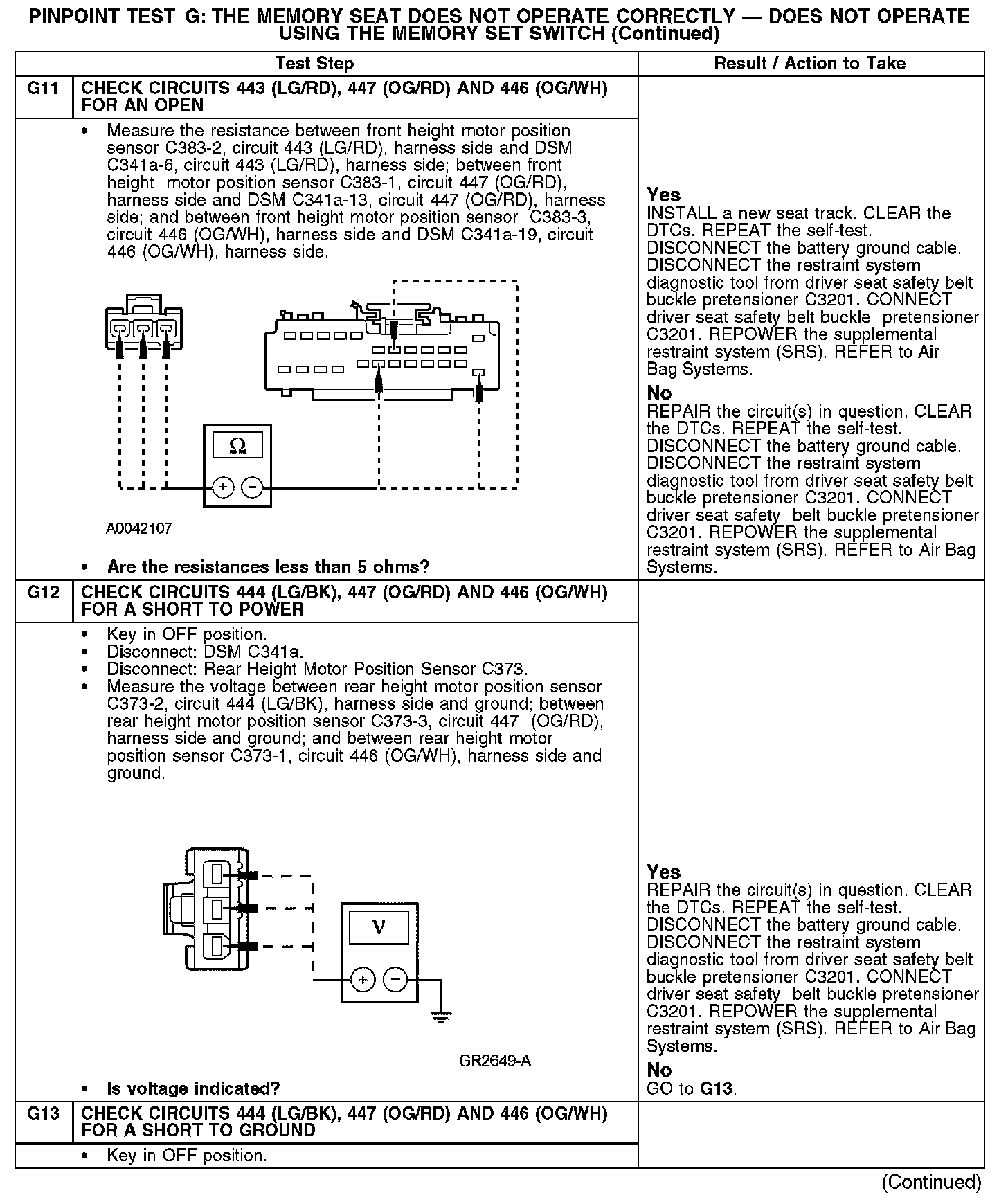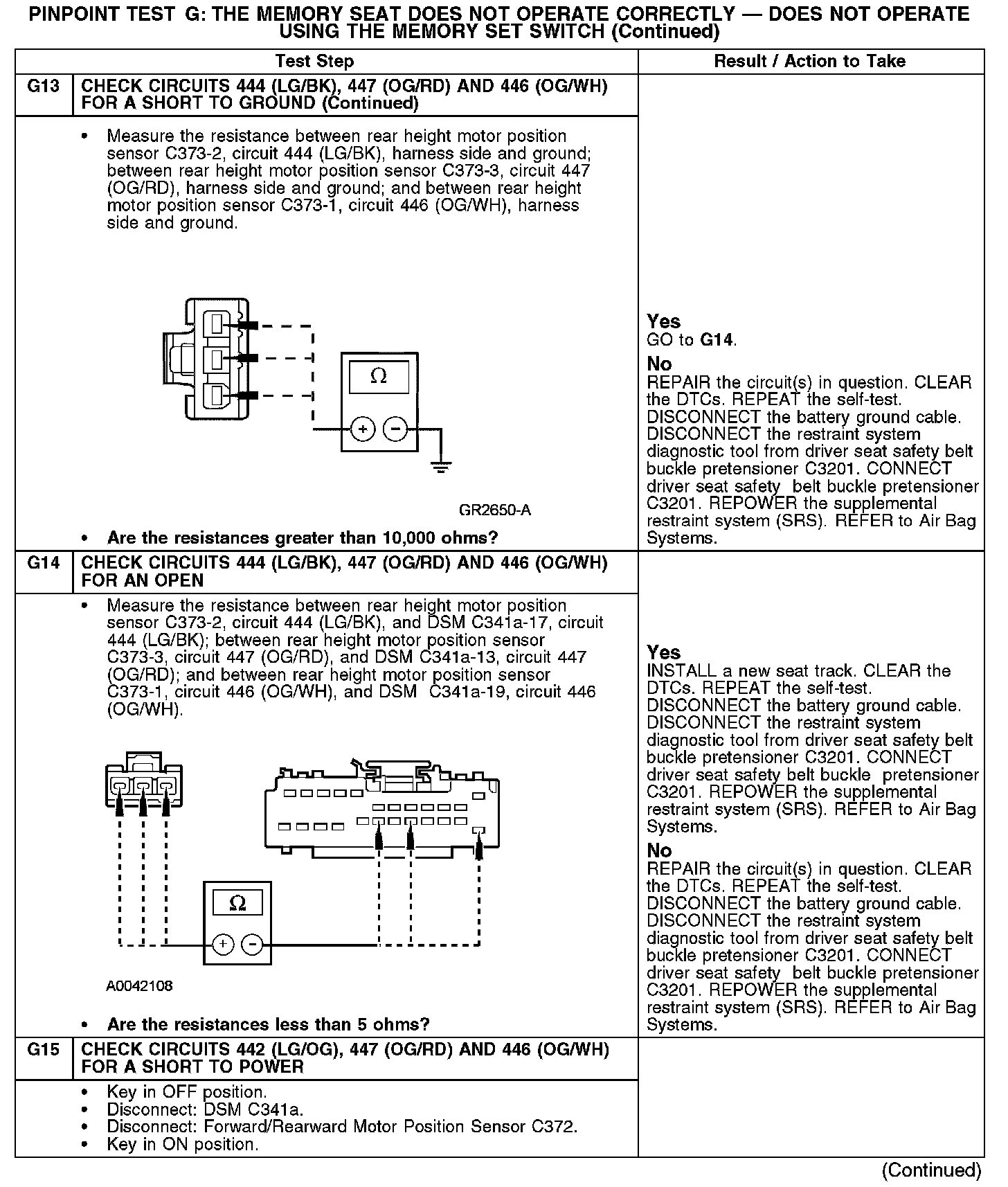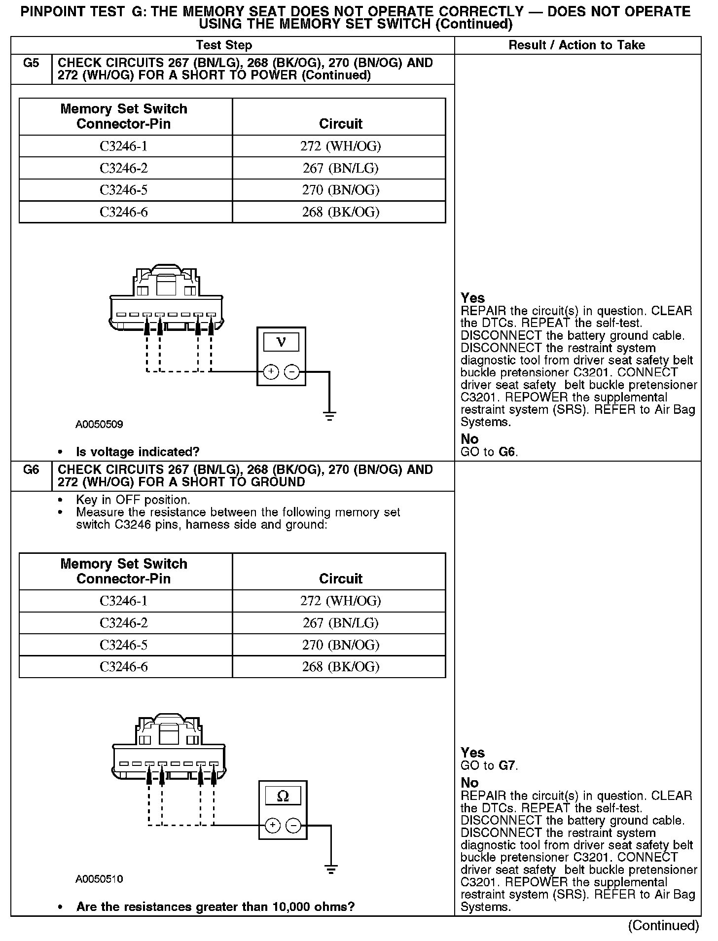 PINPOINT TEST G: THE MEMORY SEAT DOES NOT OPERATE CORRECTLY - DOES NOT OPERATE USING THE MEMORY SET SWITCHG1-G3: