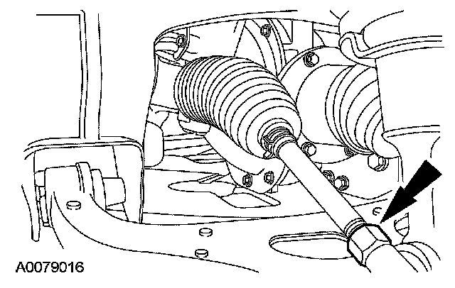 4. NOTE: Do not allow the steering gear bellows to twist when the front wheel spindle tie rod is rotated.