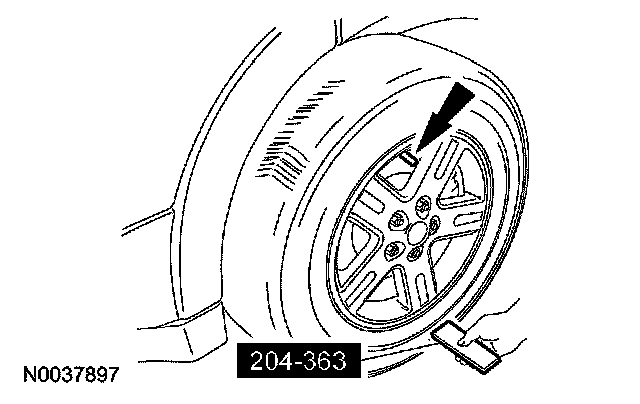 Place the activation tool on the LF tire sidewall opposite (180 degrees) from the valve stem. The horn will sound briefly to indicate that the tire pressure sensor has been recognized by the vehicle security module (VSM).
