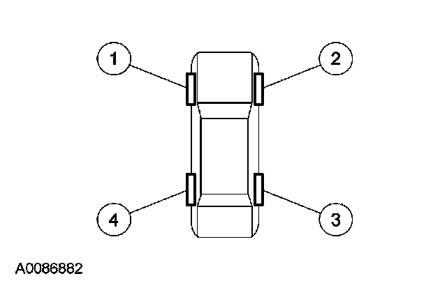 NOTE: If a sensor does not respond to the activation tool, attempt to activate the same sensor with the activation tool. If the sensor still does not respond, move the vehicle to rotate the wheels at least 1/4 of a turn and attempt to activate the same sensor again.