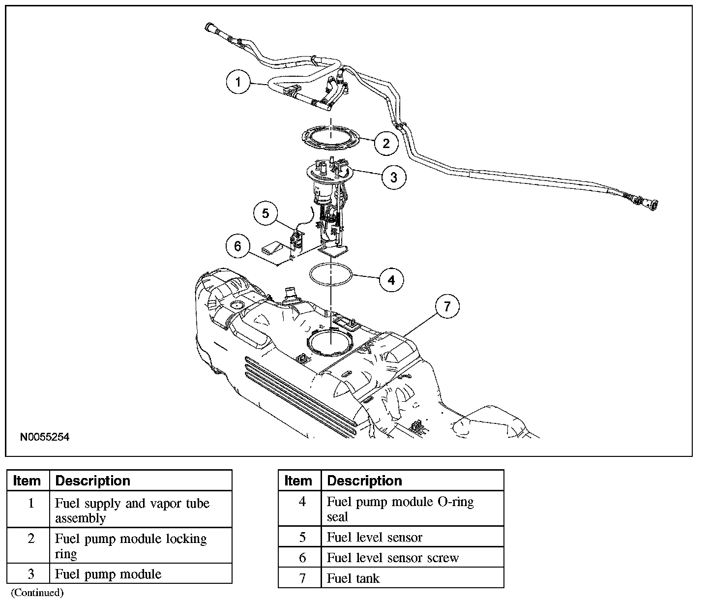 5. Disconnect the fuel and vapor tube assembly quick connect couplings at the fuel pump module and remove the fuel and vapor tube assembly from the fuel tank.