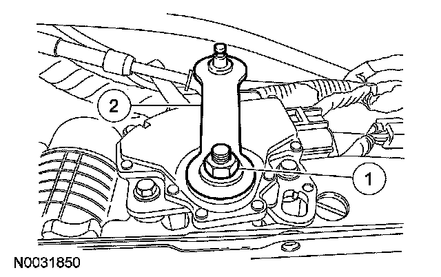4. CAUTION: Discard the outer manual control lever shaft nut. Do not reuse. The old nut will not retain the torque specification.