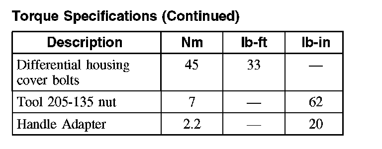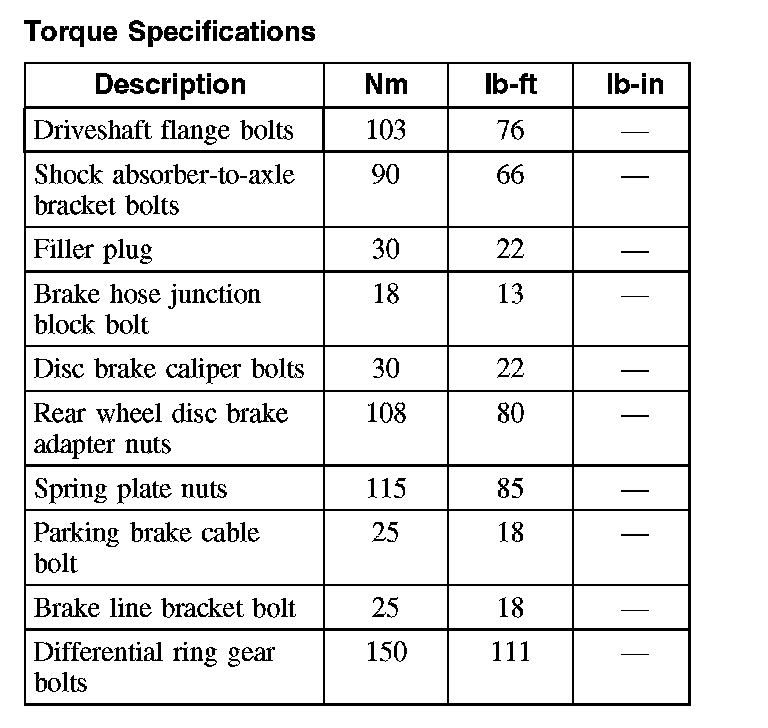 Torque Specifications: