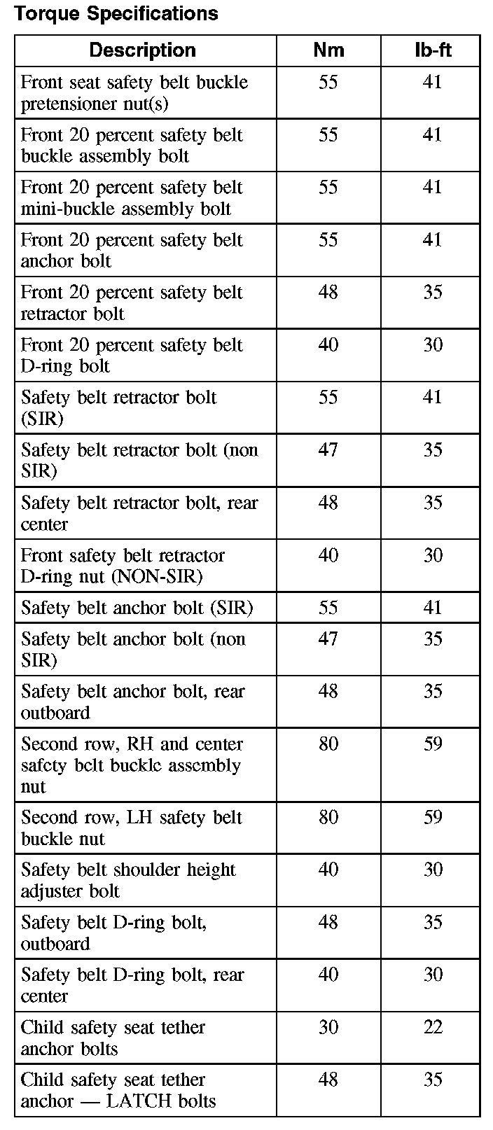 Torque Specifications: