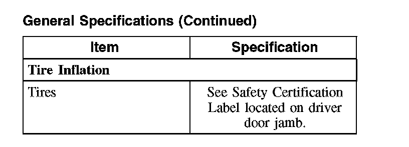 Inflate the tire to the pressure specified on the safety certification sticker located on the driver door or door pillar.