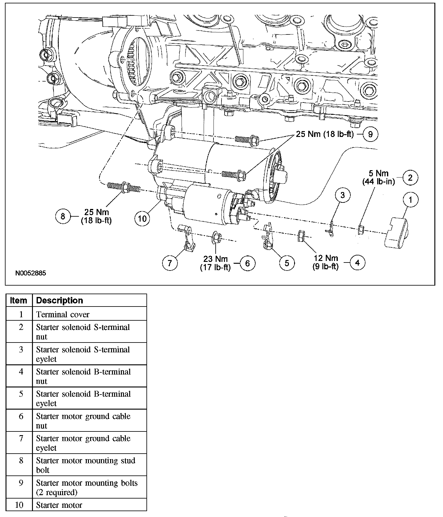 5. Remove the nut and disconnect the starter solenoid B-terminal eyelet.
