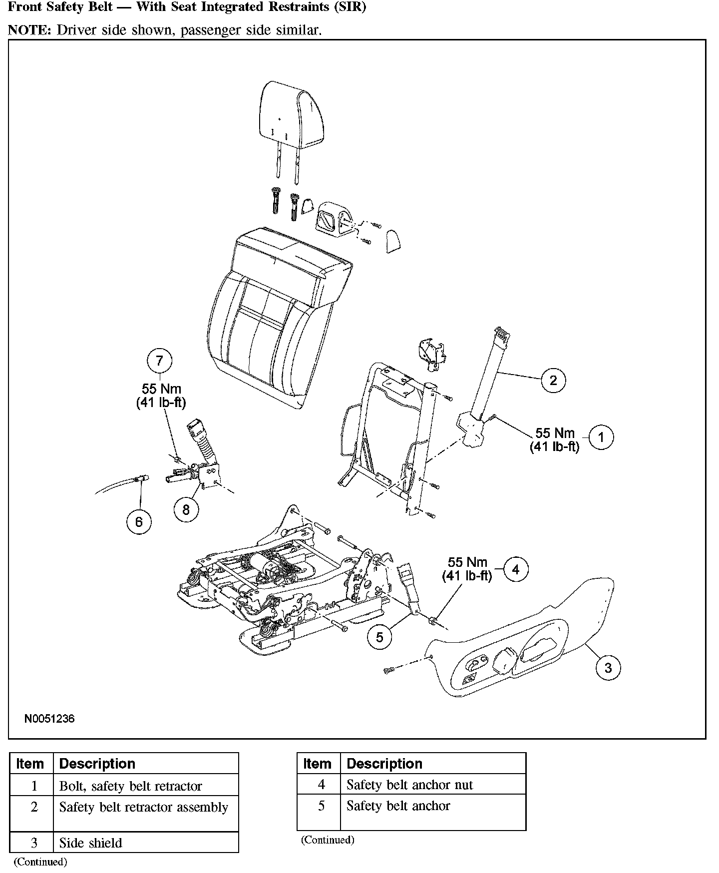 Front Safety Belt - Without Seat Integrated Restraints (SIR) (Part 2):