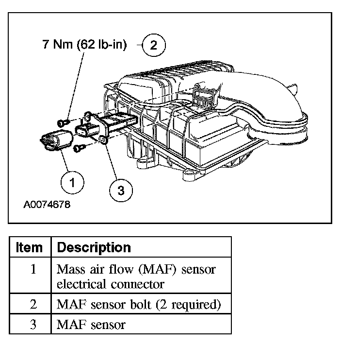 1. Disconnect the mass air flow (MAF) sensor electrical connector.