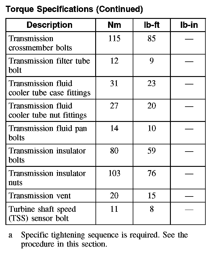 Torque Specifications: