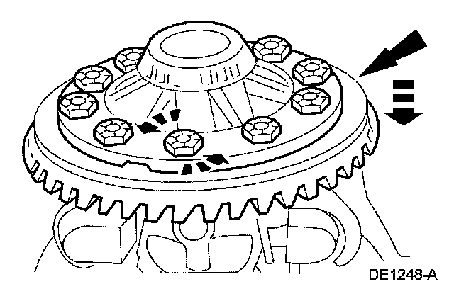 6. Remove the 10 differential ring gear bolts and the differential ring gear.
