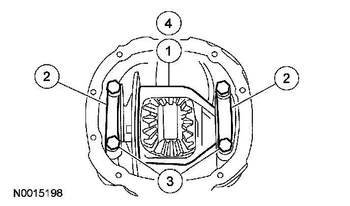 4. CAUTION: Mark the differential bearing caps Top or Bottom and LH or RH appropriately before removing them. Always install the differential bearing caps in their original positions.