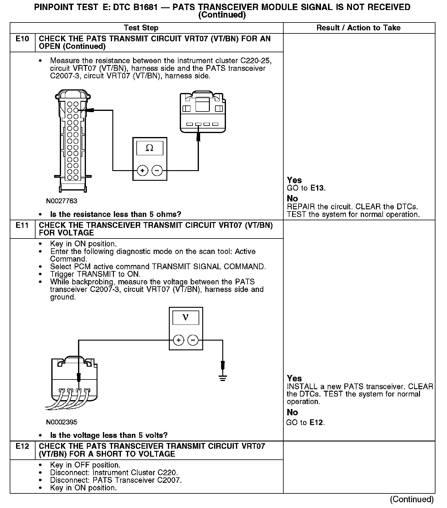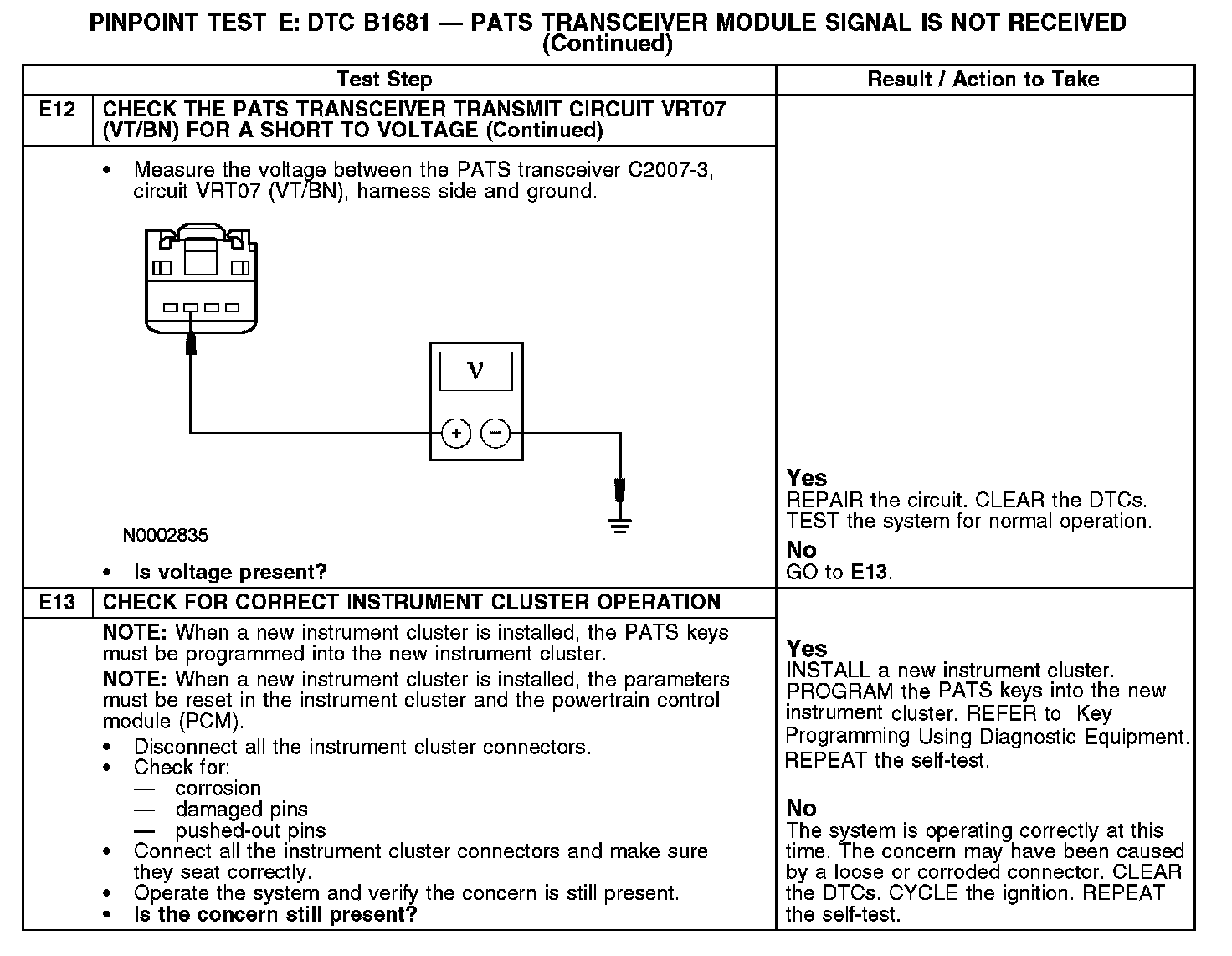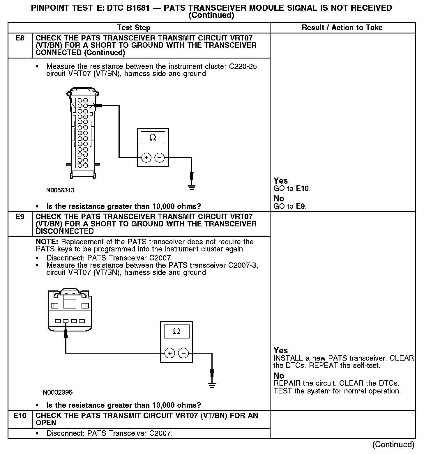 Test E: DTC B1681 - PATS Transceiver Module Signal Is Not Received