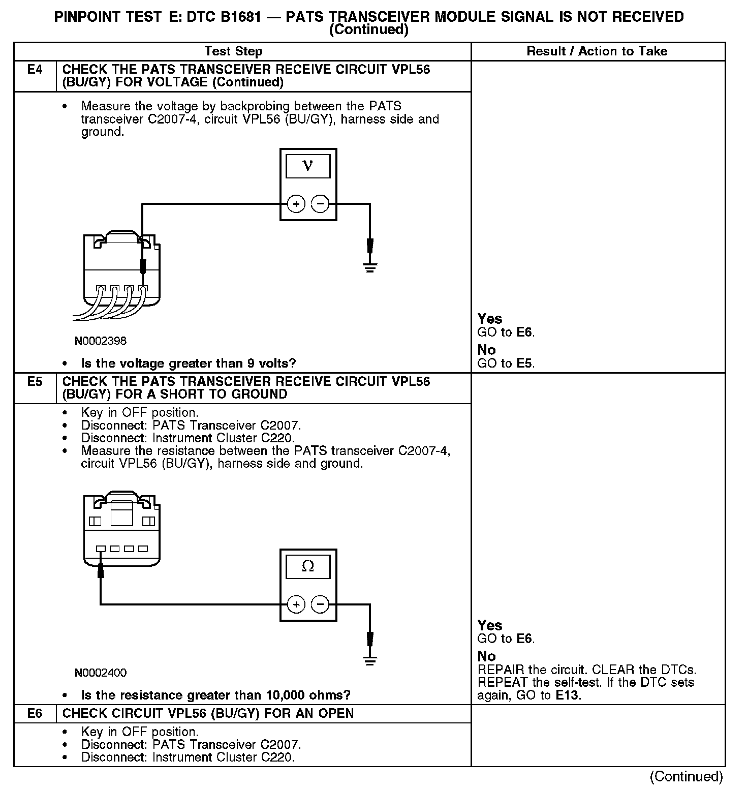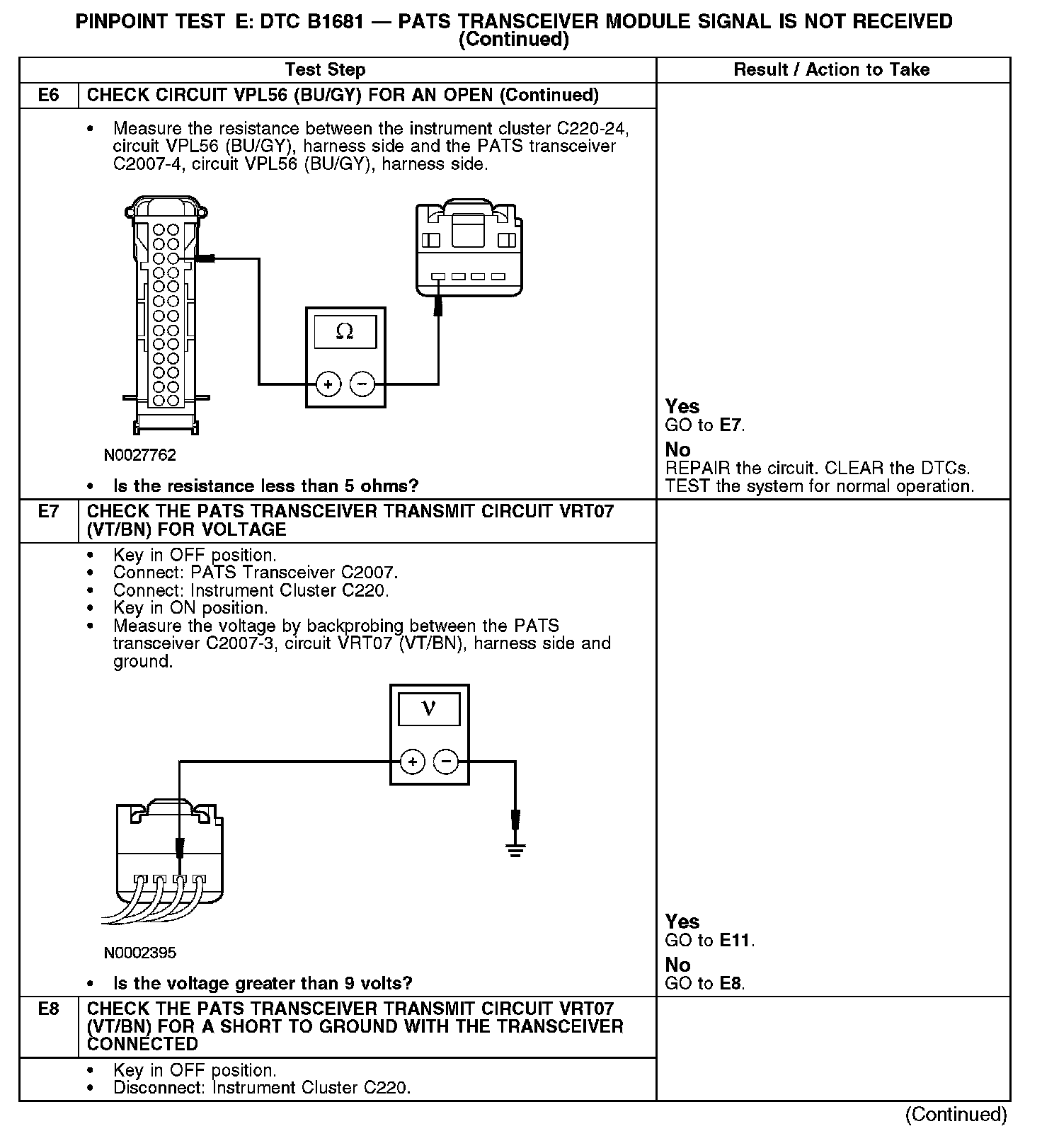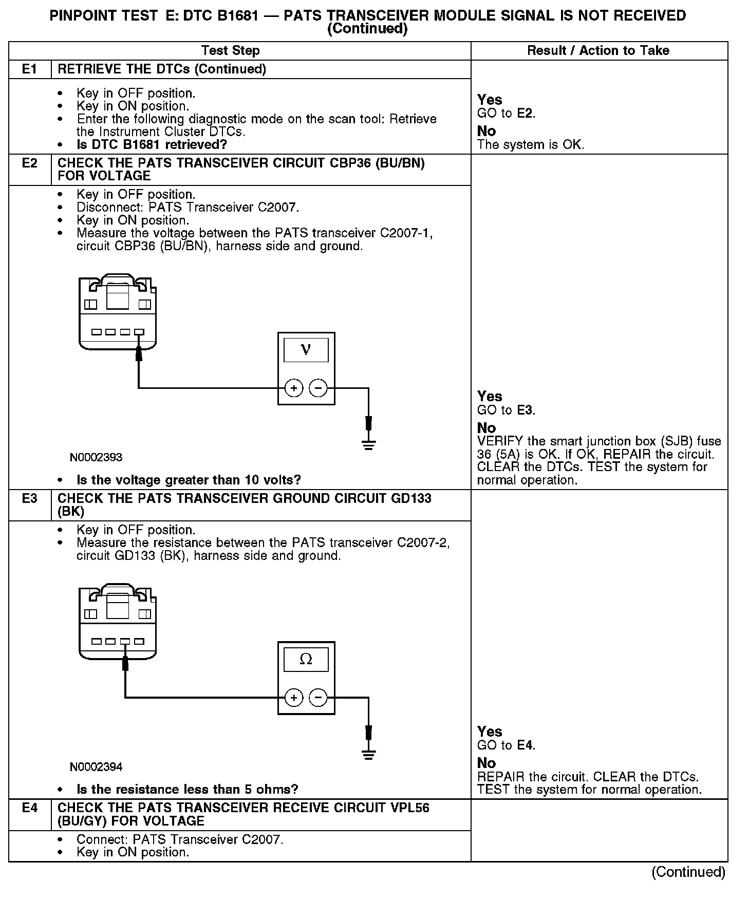 Test E: DTC B1681 - PATS Transceiver Module Signal Is Not Received