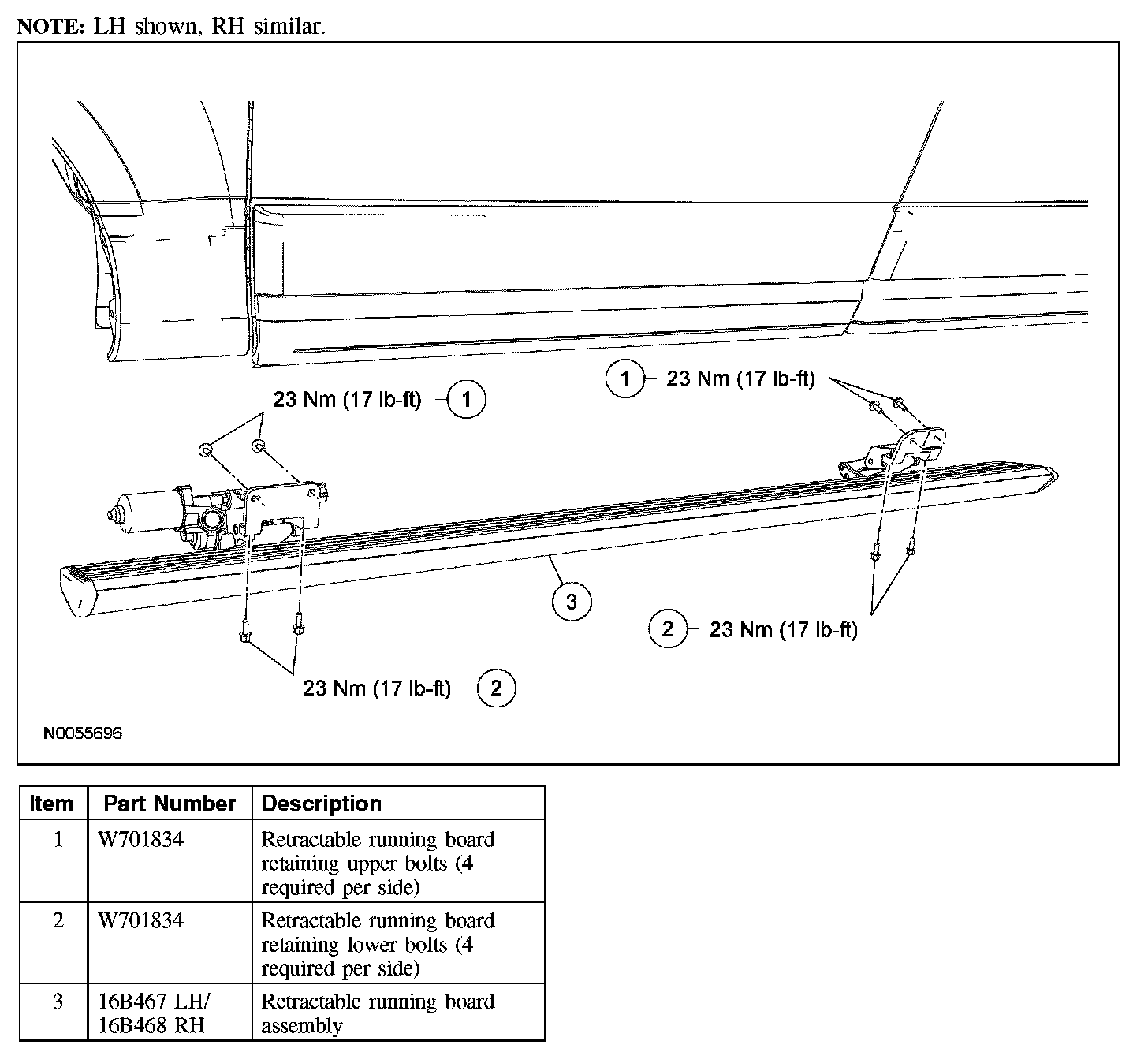 5. Remove the rear retractable running board upper and lower bolts and remove the retractable running board assembly.