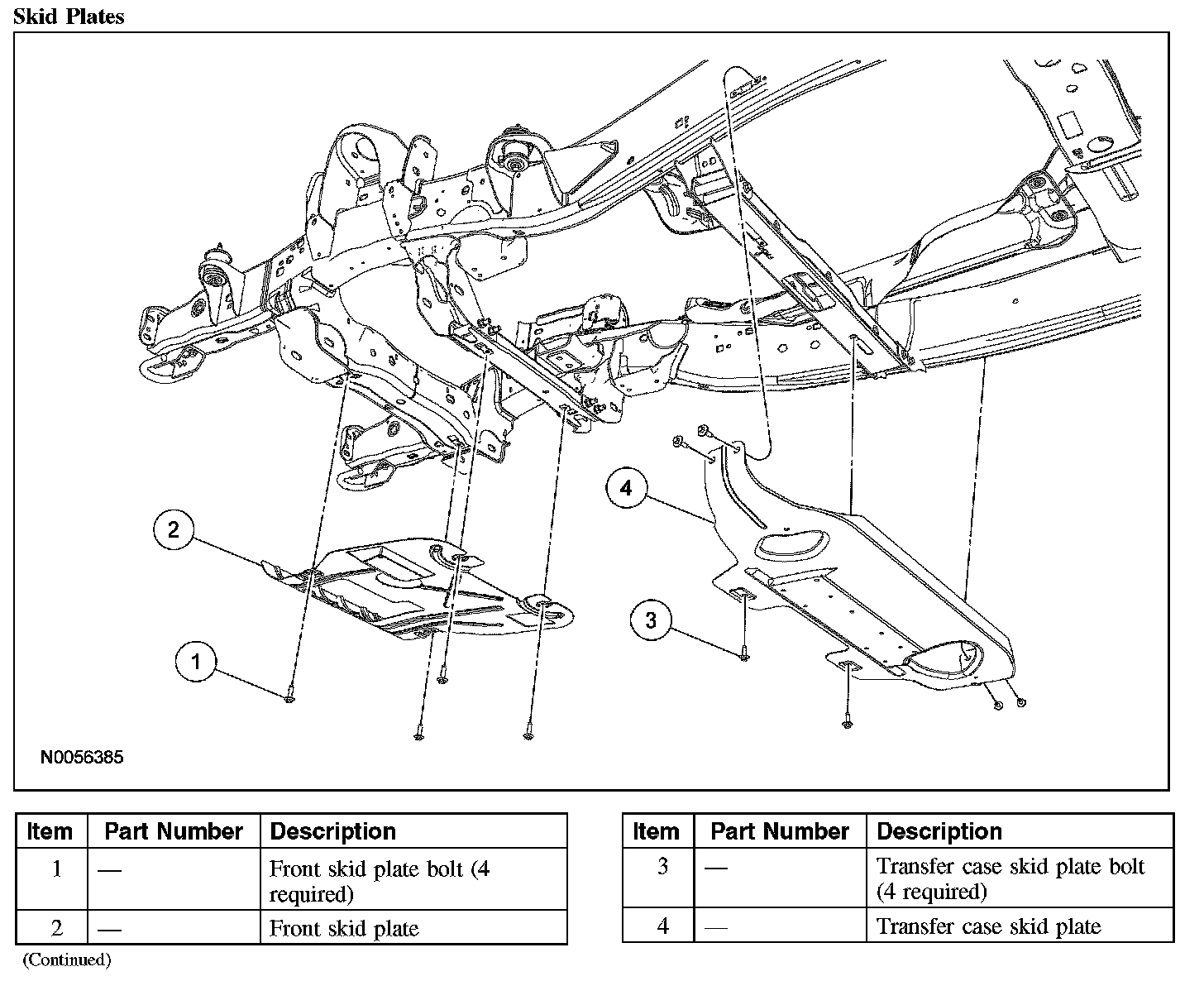 All frame mounted heat shields, except the spare tire heat shield, are tightened to 20 Nm (15 lb-ft). The spare tire heat shield is tightened to 25 Nm (18 lb-ft).