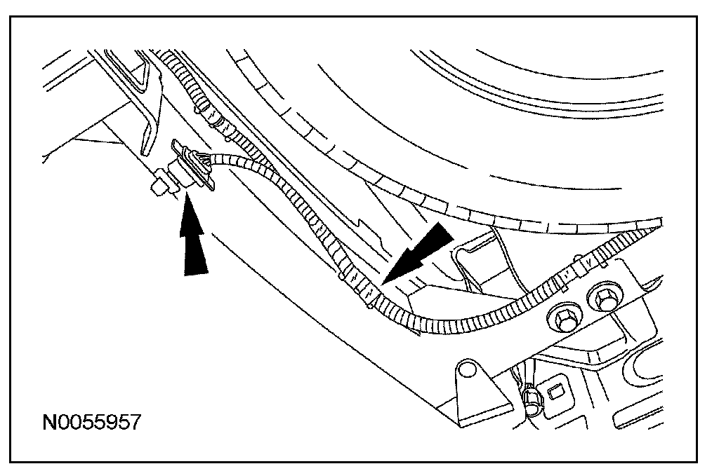 5. Remove the electrical connector from the trailer hitch and unclip the harness from the retainers on the frame.