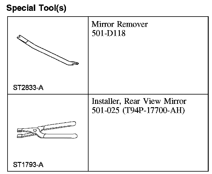 INTERIOR REAR VIEW MIRRORSpecial Tool(s):