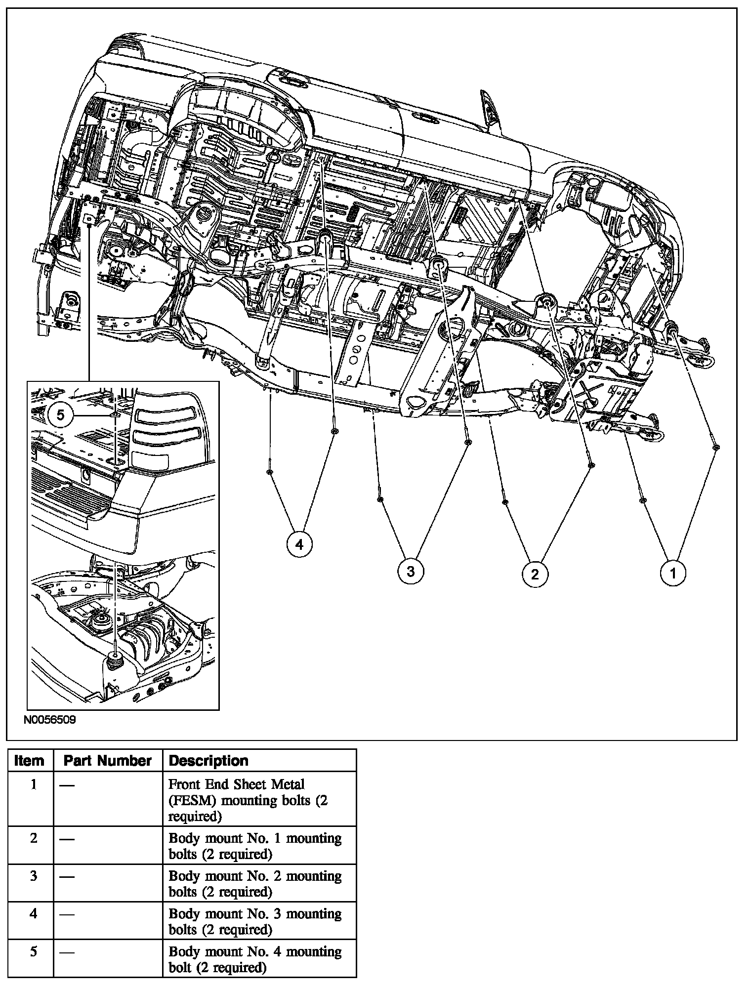 - To install, tighten the FESM body mount No. 2 and No. 3 to 80 Nm (59 lb-ft).
