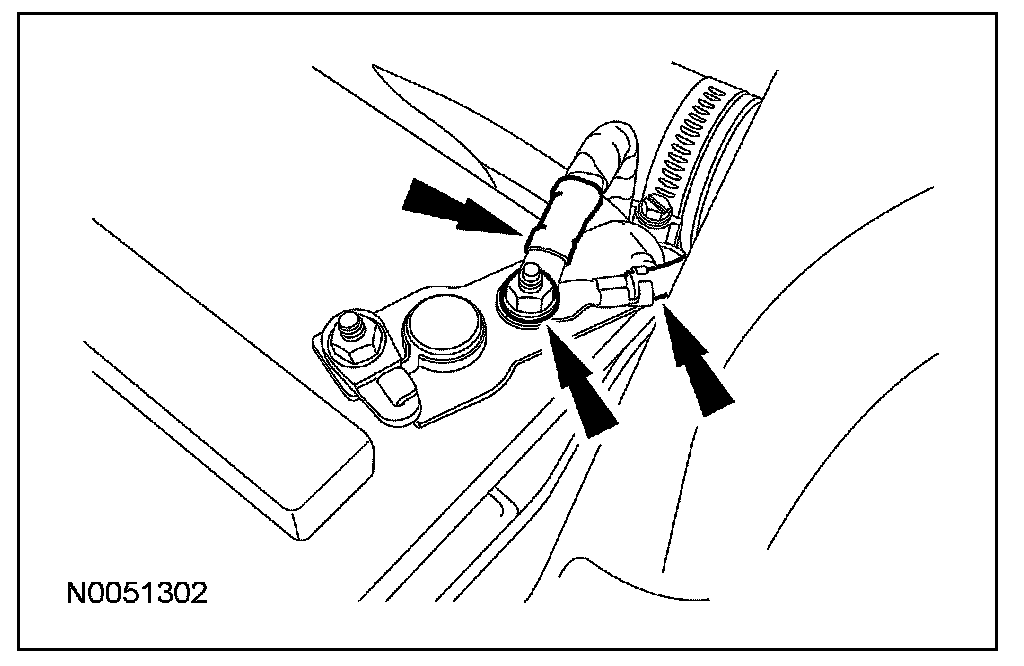 4. Remove the nut and separate the leads from the battery positive cable and position aside.