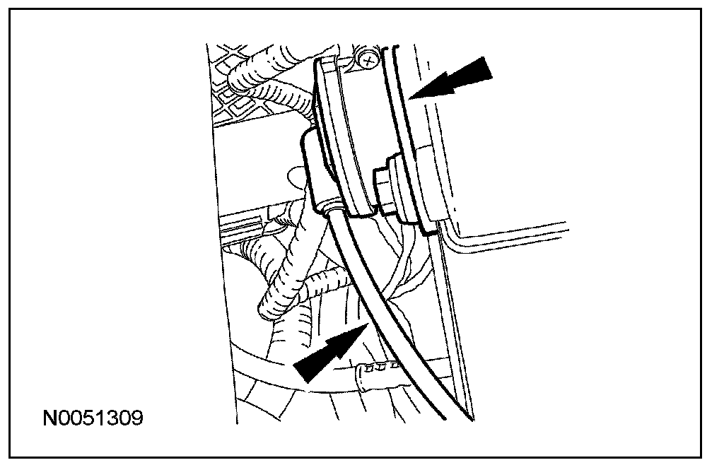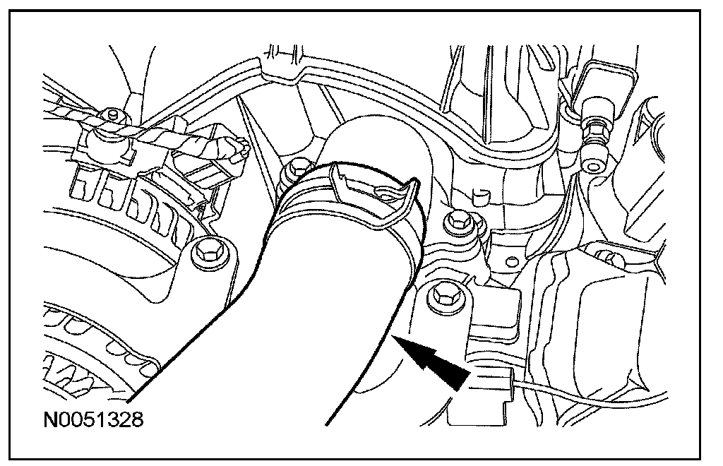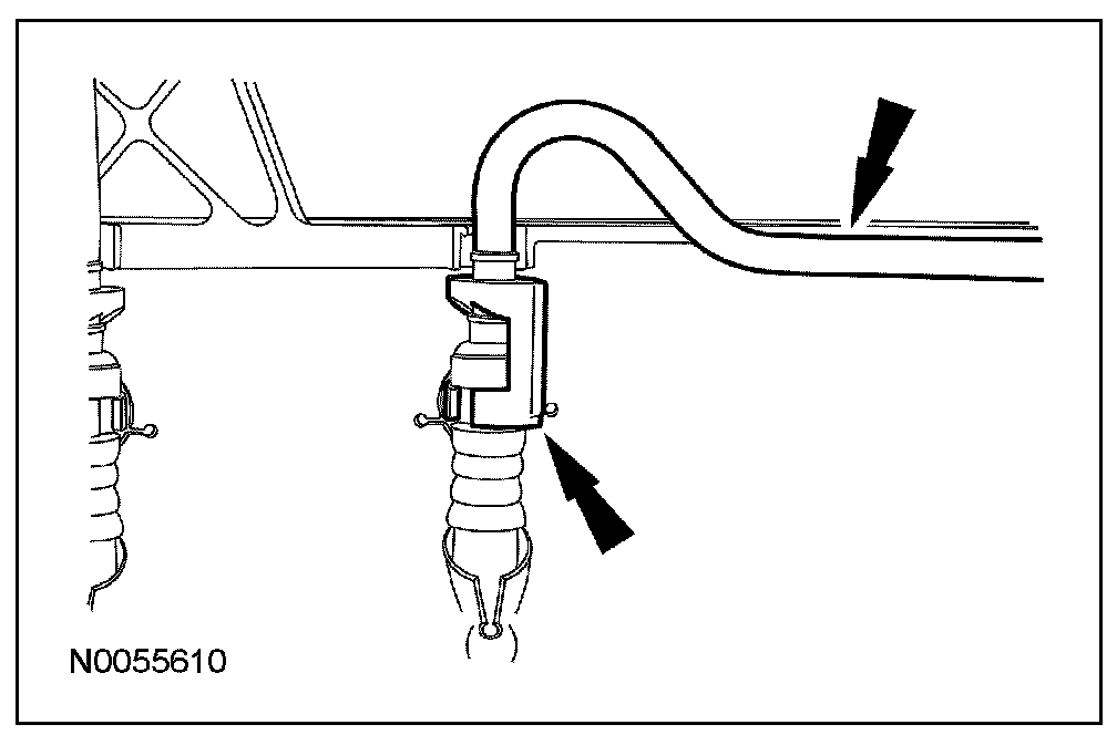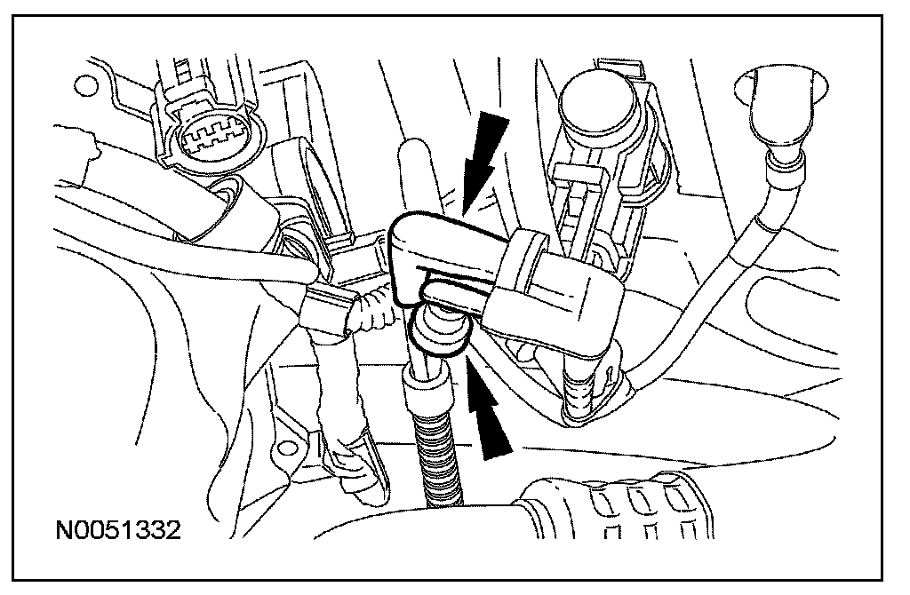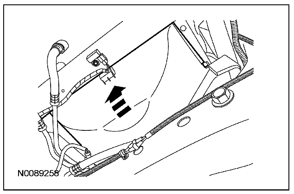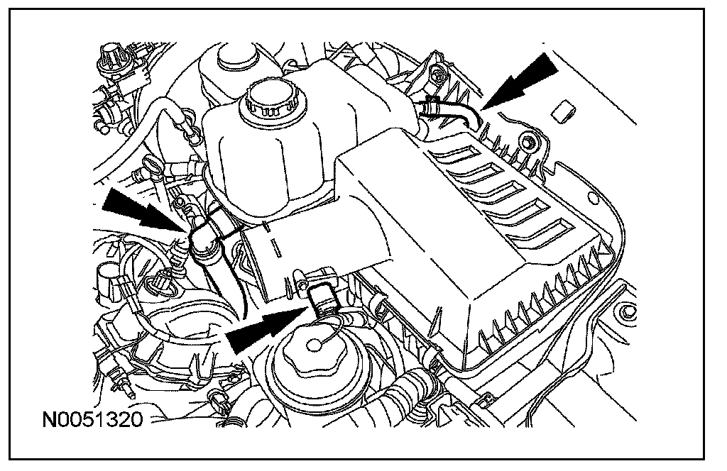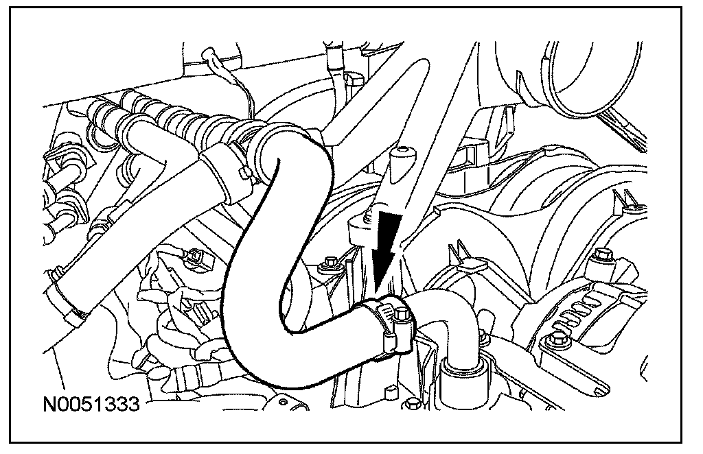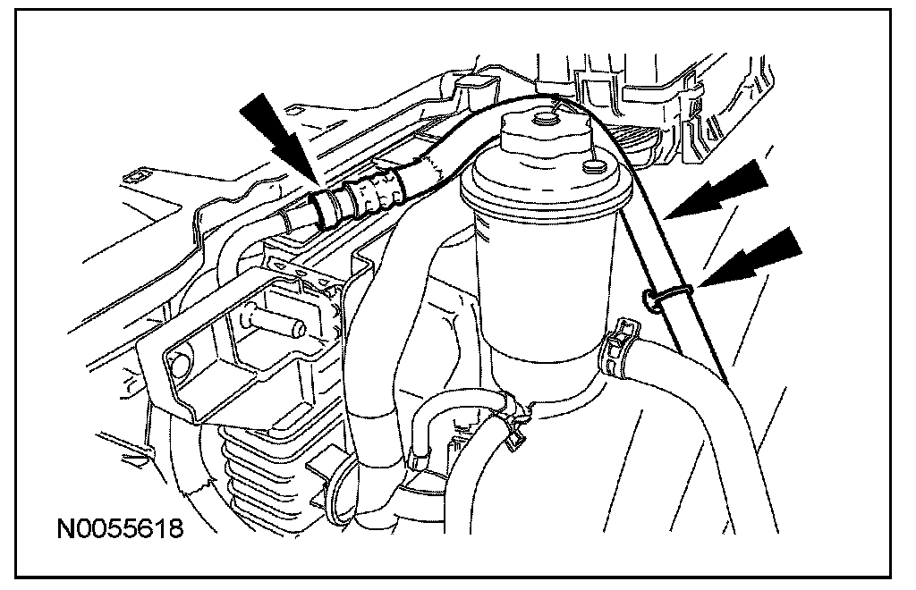 - Unclip the RH hose from the retainers on the side of the degas bottle/air cleaner module.