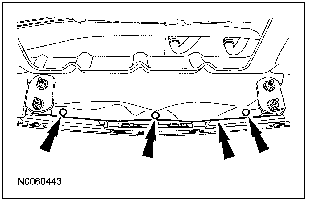 Remove the 6 body mount bolts and 2 front end sheet metal body support bolts.