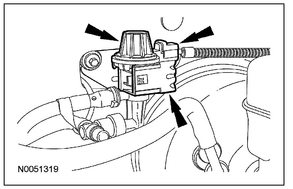 38. Disconnect the canister purge valve electrical connector and remove it from the bracket, position the canister aside.