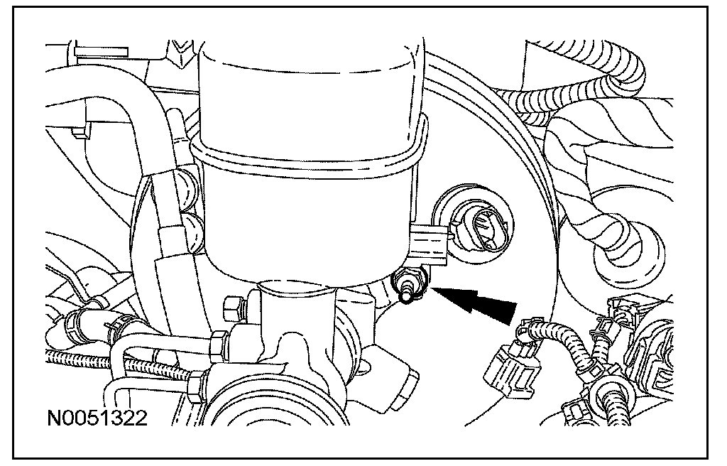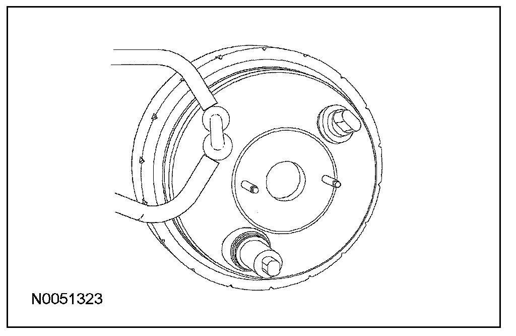 42. Disconnect the brake booster vacuum supply hose and secure the hose to the engine.