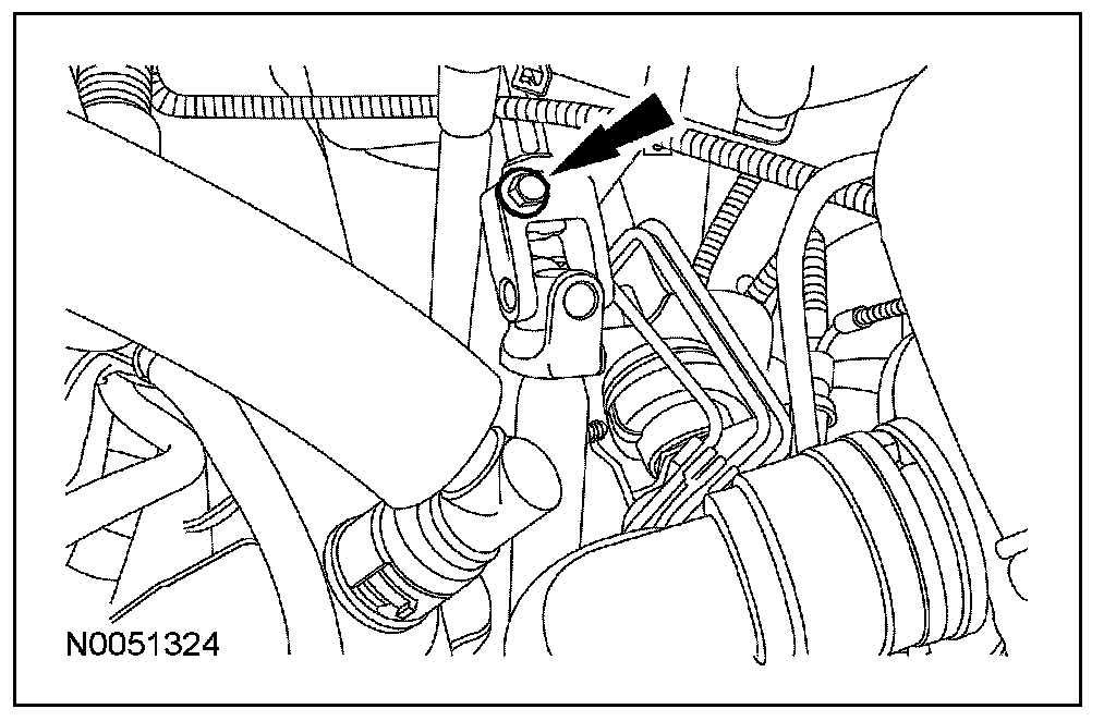 44. NOTICE: Do not allow the steering column shaft to rotate while the intermediate shaft is disconnected or damage to the clockspring may result. If there is evidence that the shaft has rotated, the clockspring must be removed and recentered. For additional information, refer to Air Bag Systems.