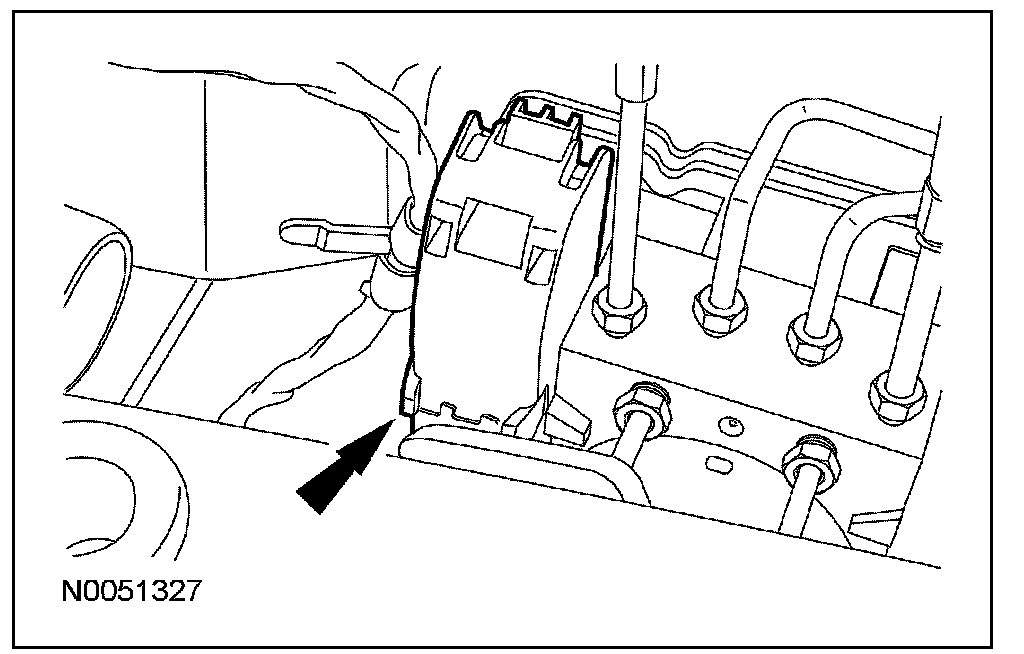50. Remove the nut from the accumulator-to-manifold and tube assembly and position aside.