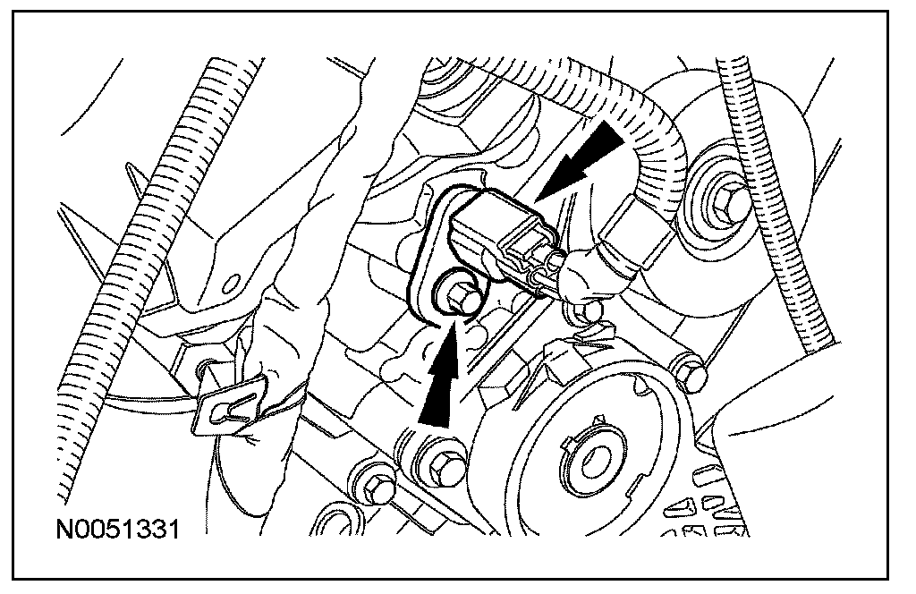 Remove the bolts and the Camshaft Position (CMP) sensors (1 each side). Discard the O-ring seals.